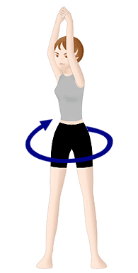 (6)両手を頭の上で組み、そのままぐるっと右に回します。終わったら左に回します。