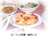 日はゆでたものや炒めたものなど数種のビーフン料理が出され大変おいしくいただいた。ではビーフンといえば乾燥した細いものを思い浮かべるが、桂林のビーフンは太目のもっちりとした食感であった。